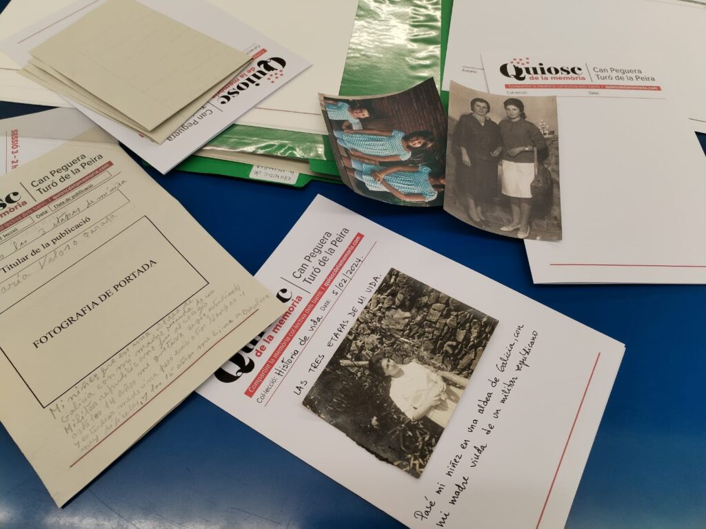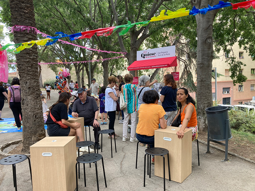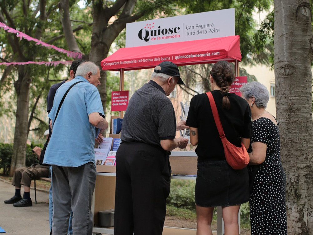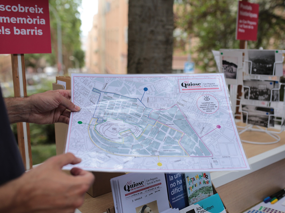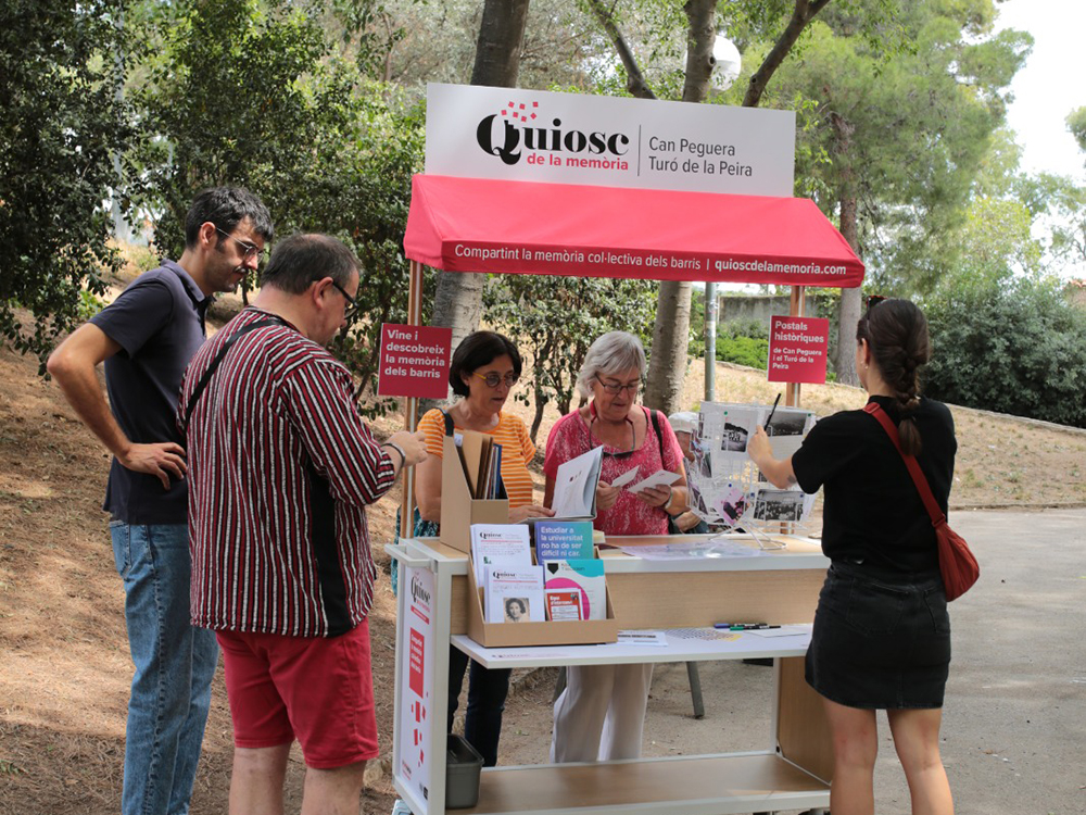 Recull d’imatges del Quiosc de la Memòria de Can Peguera i el Turó de la Peira i dels tallers d’autoedició comunitaris que s’han dut a terme per recollir la memòria col·lectiva dels barris.
