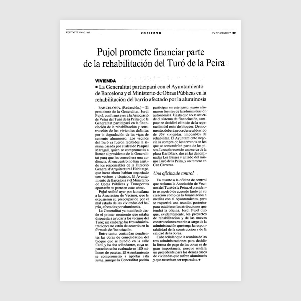Recull col·laboratiu de retalls de premsa i publicacions amb notícies sobre Can Peguera i el Turó de la Peira que han aparegut al llarg dels anys i recullen la història dels barris.